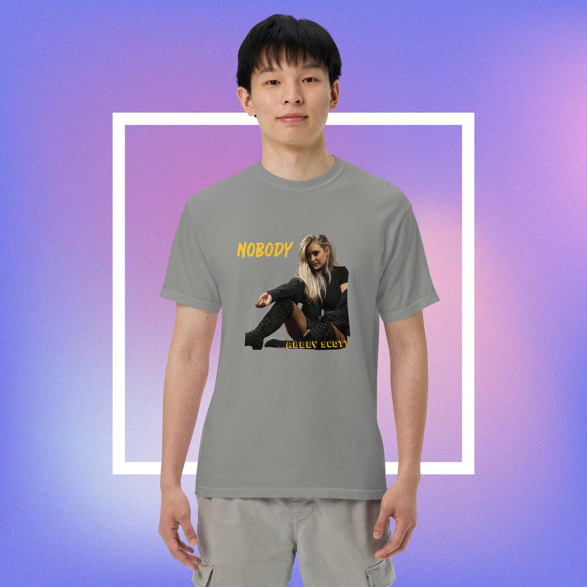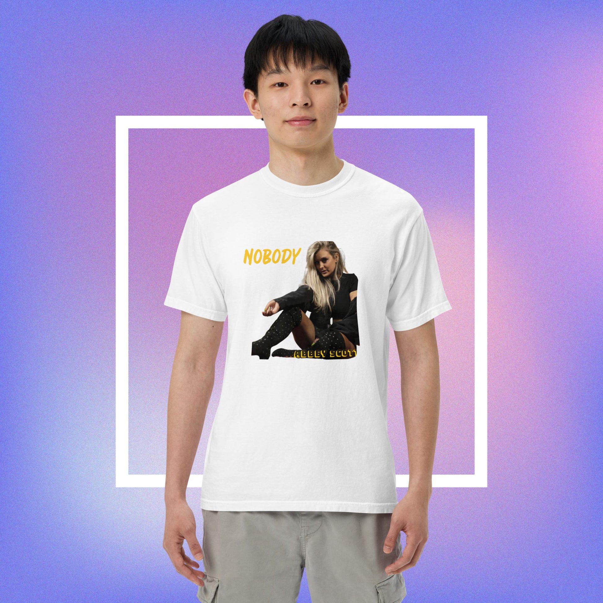 Rock your Nobody Album T-shirt that is a thick, structured tee that’s also super soft and breathable—look no further! The men’s garment-dyed heavyweight t-shirt ticks all the boxes and is made of 100% ring-spun cotton. The regular t-shirt style will complement most looks and fit you to a tee.
